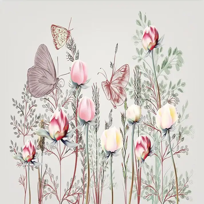 Tranh Dán Tường 3D Hiện Đại, Hoa Hồng Và Bướm