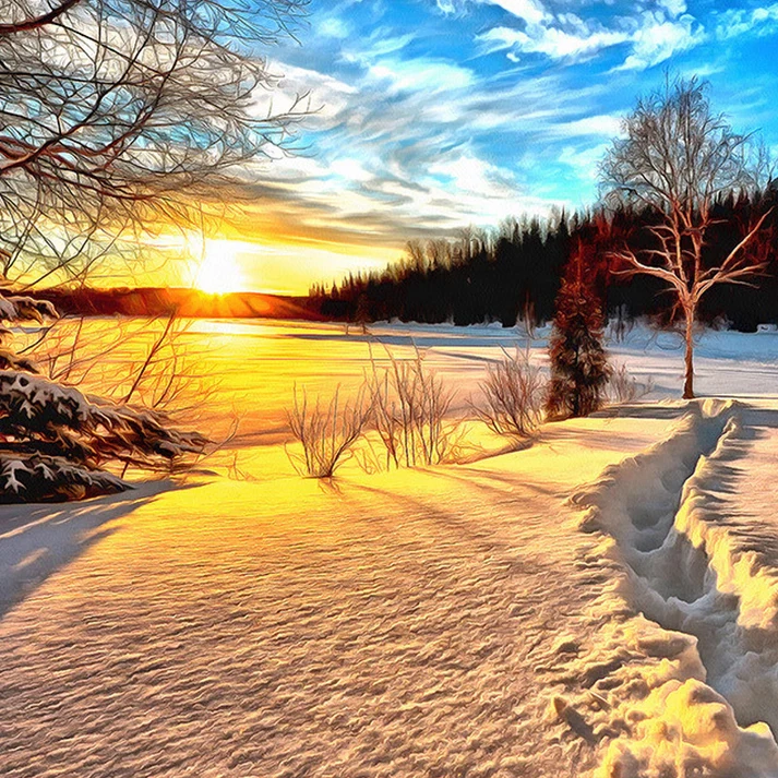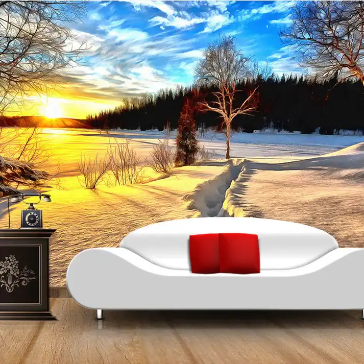 Tranh Dán Tường Phong Cảnh Tuyết Lúc Bình Minh