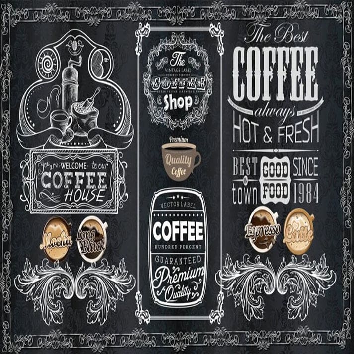 Tranh Dán Tường Quán Coffee Màu Đen Cổ Điển