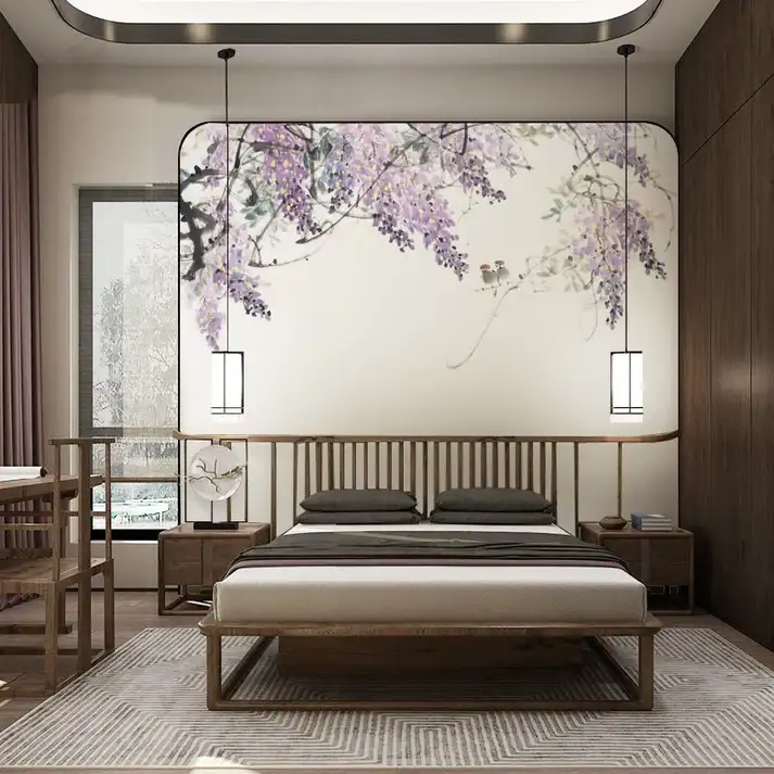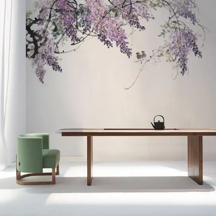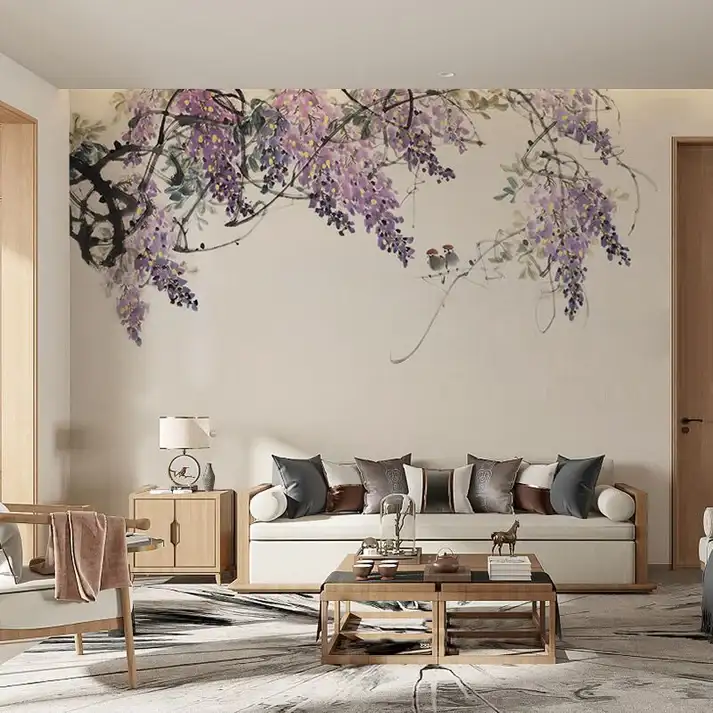 Tranh Dán Tường Tùy Chỉnh Mực Tàu Họa Tiết Hoa Tử Đằng Tím